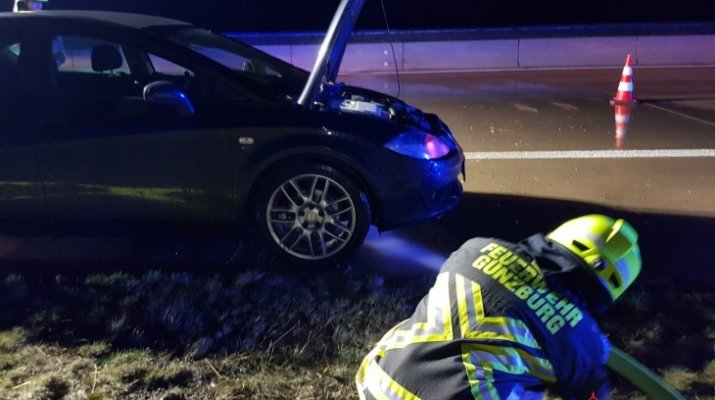 Am Abend der nächste Einsatz. Wieder wurden wir auf die BAB A8 in Fahrtrichtung München alarmiert. Gemeldet wurde hier ein brennender PKW. Beim Eintreffen der ersten Kräfte stellte sich jedoch heraus, dass ein PKW wegen eines Defektes liegen geblieben war. Die Feuerwehr sicherte die Unfallstelle ab und reinigte die Fahrbahn von den ausgelaufenen Betriebsmitteln. Parallel zu den Einsätzen waren hierzu Kammeraden der Günzburger Wehr noch bei einer Sicherheitswache tätig.