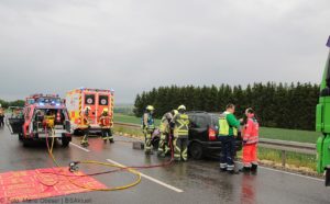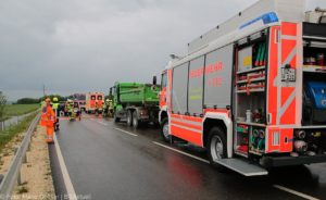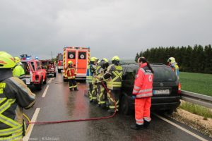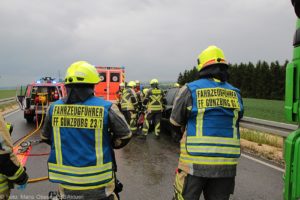 An die Unfallstelle alarmiert wurden die Feuerwehren Günzburg, Burgau, Rettenbach und Limbach. Die Kräfte der Feuerwehr Günzburg entfernten die Fahrzeugtüre des Opels, um den Fahrer aus seinem Fahrzeug befreien zu können. Ebenfalls vor Ort waren zwei Rettungswagen und ein Notarztfahrzeug, sowie eine Streife der Polizeiinspektion Burgau. Die Strecke bis zum Abschluss der Maßnahmen komplett gesperrt.