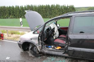 Der 64-Jährige und seine 39-jährige Beifahrerin wurden leicht verletzt in ein Krankenhaus verbracht. Der Unfallverursacher, in dessen Pkw alle Airbags auslösten, blieb unverletzt. Der entstandene Sachschaden beläuft sich auf etwa 9.000 Euro.