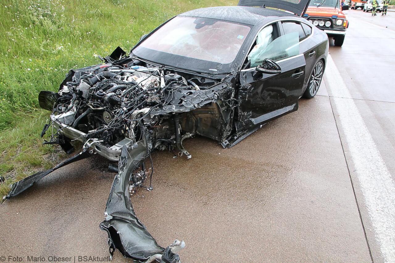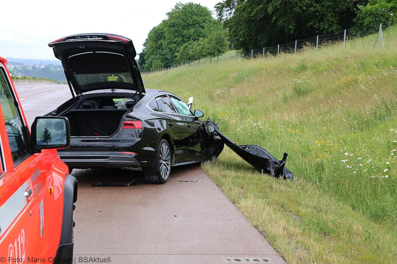 Der Audi wies einen erheblichen Unfallschaden im Frontbereich auf, das rechte Federbein wurde herausgerissen. Die Autobahnpolizei Günzburg geht von einem Sachschaden von rund 30.000 Euro aus.