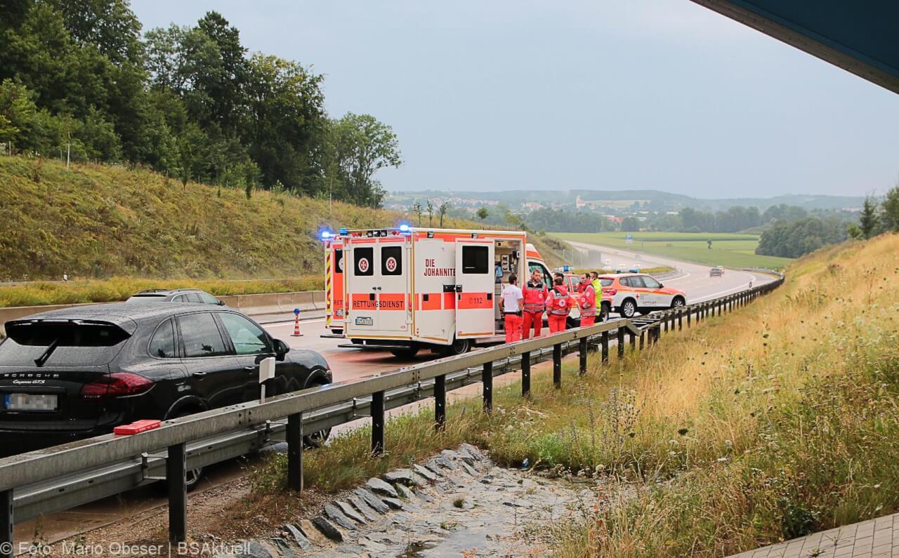 Am 27.07.2019 kam es zu einem Verkehrsunfall auf der Autobahn 8, zwischen den Anschlussstellen Günzburg und Burgau mit zwei beteiligten Fahrzeugen.
