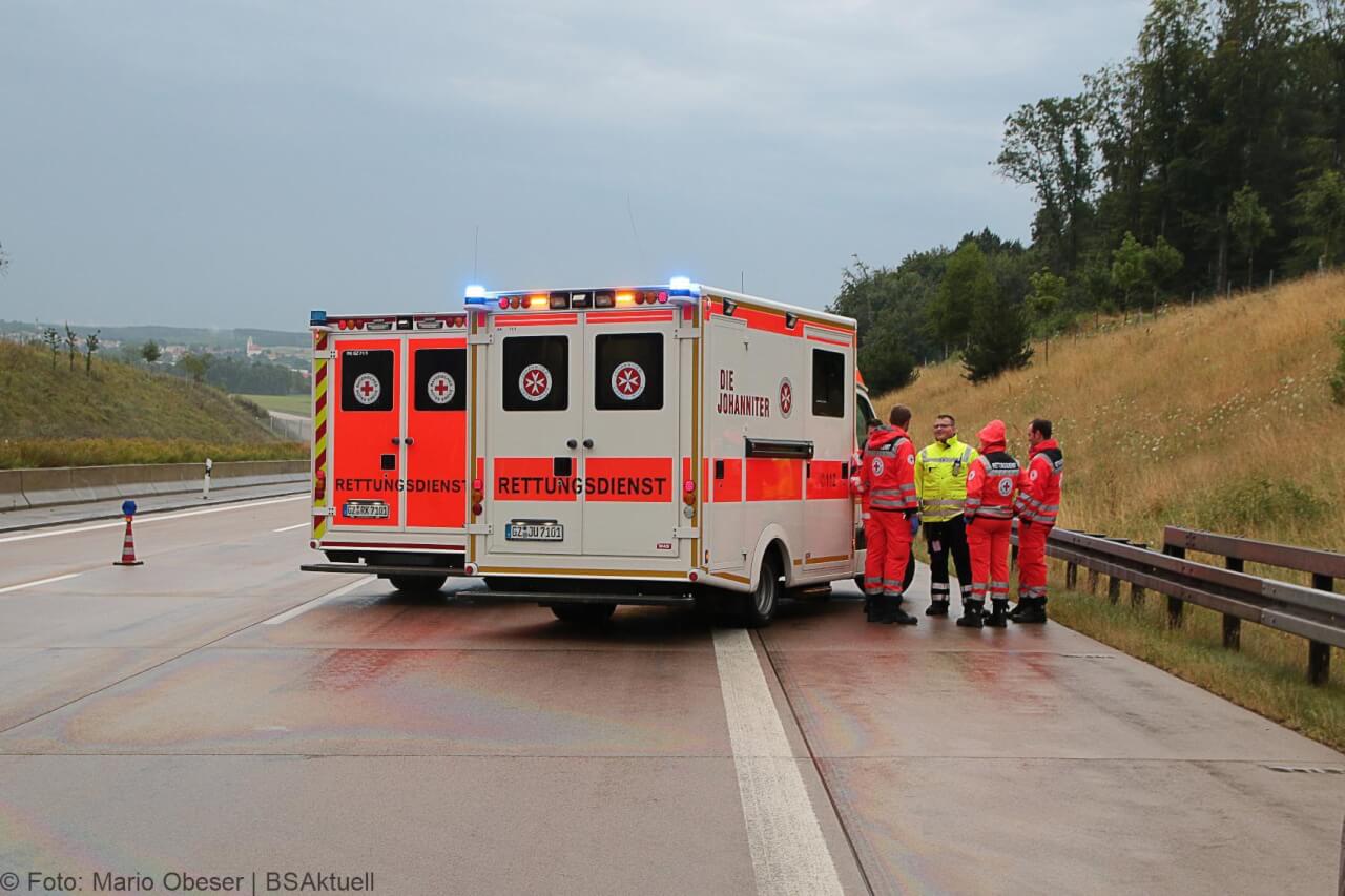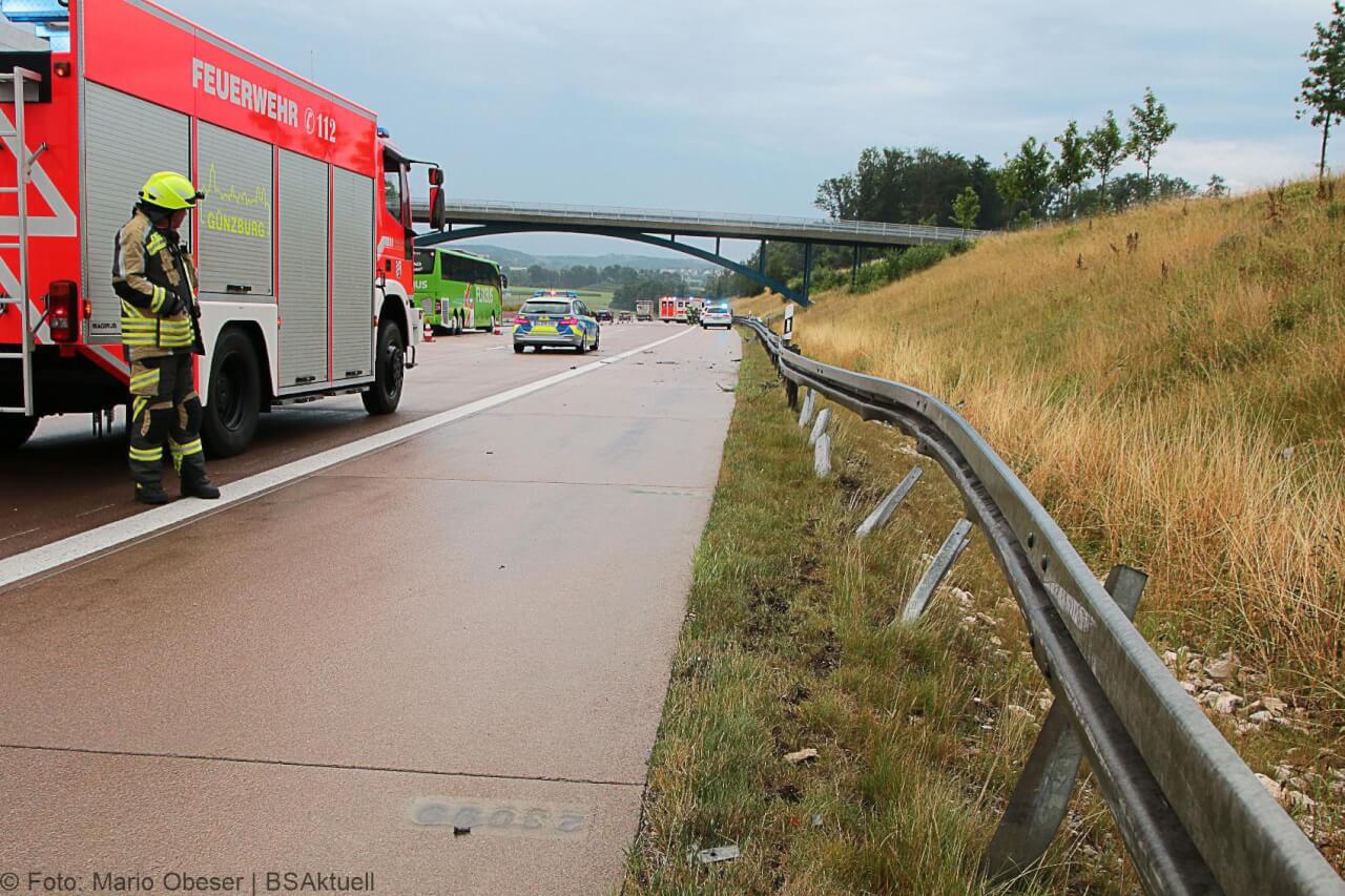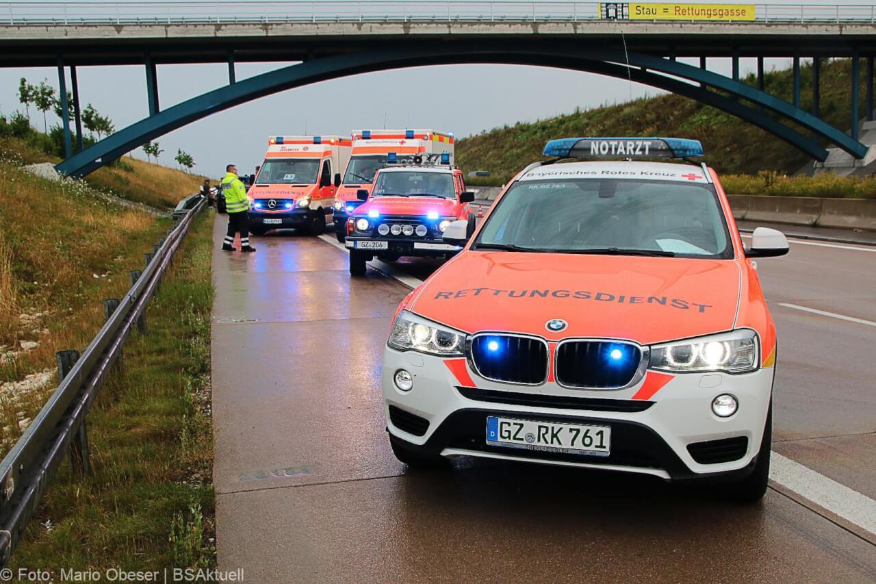 Neben der Feuerwehr Günzburg war der Rettungsdienst mit zwei Rettungswagen, einem Notarztfahrzeug aus Günzburg und einem Einsatzleiter Rettungsdienst an der Unfallstelle. Die Autobahnpolizei Günzburg war zum Unfallaufnahme im Einsatz.