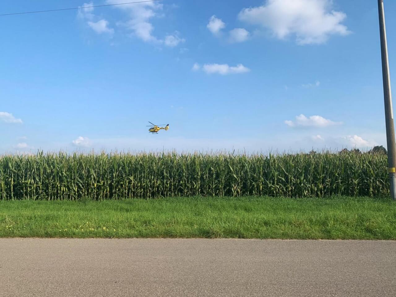 Die 39-jährige Frau befand sich alleine seit etwa 14.00 Uhr auf einem Ausritt und wurde an einem Maisfeld, in der Nähe des Langen Staudenwegs, eher durch einen Zufall gefunden. Eine andere Reiterin war in der Nähe unterwegs, als ihr Pferd offensichtlich Witterung aufnahm. Die Reiterin, die zu dieser Zeit zu Fuß ihr Pferd führte, fand so die lebensgefährlich Verletzte schließlich auf.