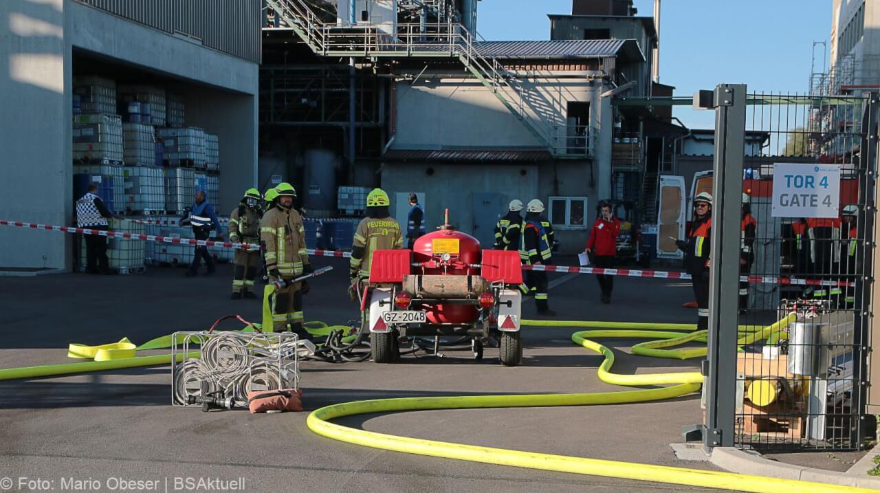 Zahlreiche Einsatzkräfte führten am vergangenen Samstag, dem 12.10.2019, eine Katastrophenschutzübung bei der Chemische Fabrik Karl Bucher GmbH in Waldstetten, im Kreis Günzburg, durch.