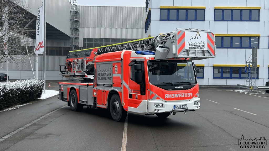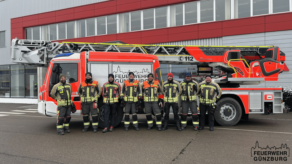 Nach rund vier Jahren Ausschreibungs- und Beschaffungsdauer war es nun endlich soweit. Die neue Drehleiter vom Typ „M32L-AS n.B.“ konnte am 23.01.2026 vom Hersteller übernommen und ins Feuerwehrhaus nach Günzburg überführt werden.