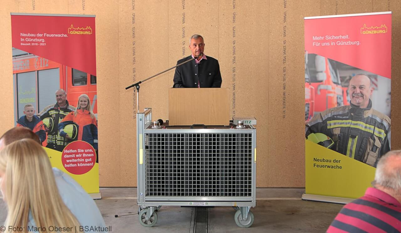 Das neue Feuerwehrgerätehaus in Günzburg. Am 05.07.2019 wurde Richtfest gefeiert.