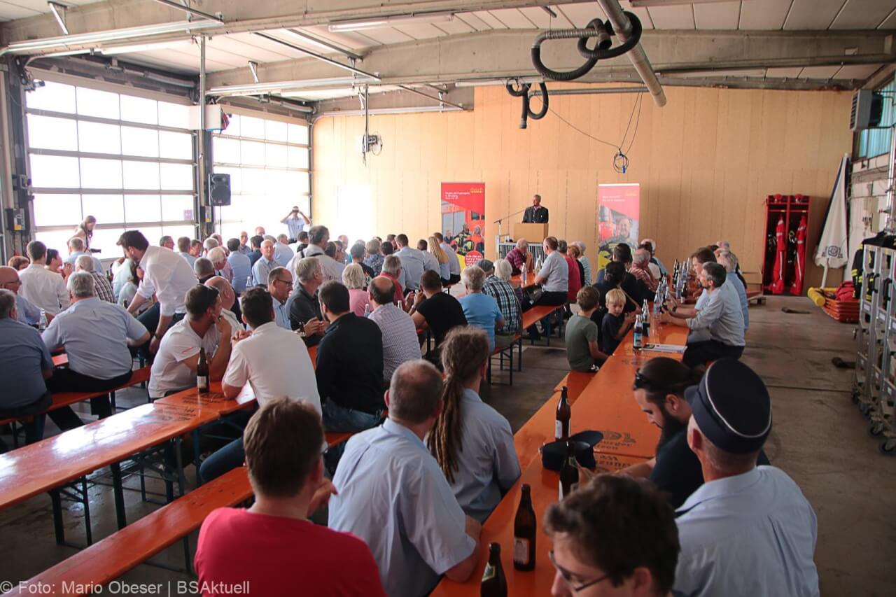 Der OB nannte einige Zahlen um den Bau des Gerätehauses, so wurden 4.800 m³ Aushub genommen, etwa 2100 m³ Stahlbeton eingesetzt, rund 240 Tonnen Stahl und mehr als 500 m² Glas verbaut. Über 50 Firmen und Ingenieurbüros sind beteiligt, um den knapp 100 Feuerwehrkräften und 14 Jugendfeuerwehrlern ein neues schönes und modernes Gerätehaus zu schaffen.