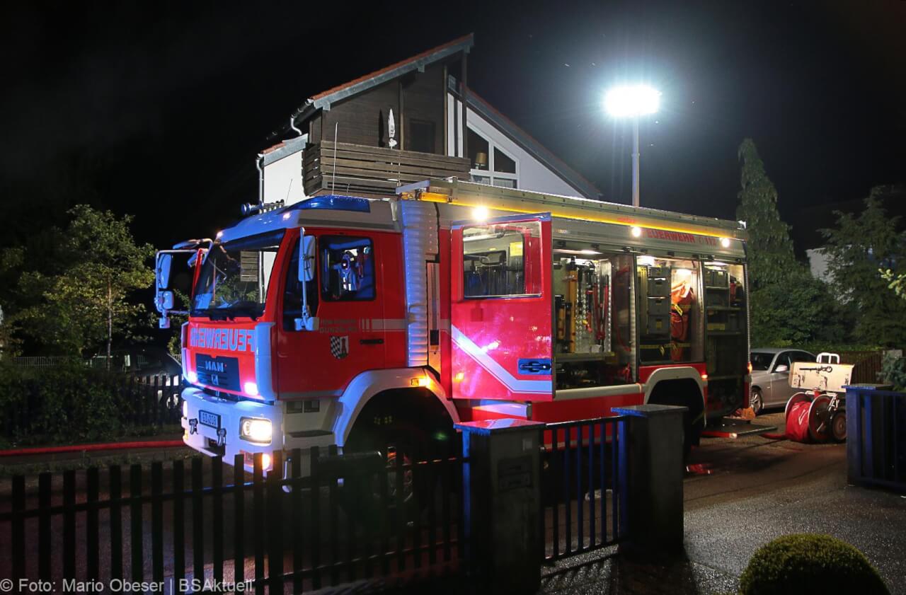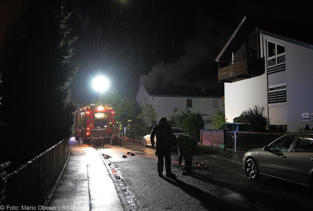 Begleitet von teils starkem Regen und vereinzelt Hagel gab es auch Blitze, wovon einer um 01.06 Uhr in den Dachstuhl eines Hauses im Mozartring einschlug. Wie die drei Bewohner, die zu diesem Zeitpunkt zuhause waren berichteten, hörten sie einen sehr starken Schlag, sofort darauf fiel der Strom aus und es roch verbrannt. Kurze Zeit später drang dichter Rauch aus dem vorderen Teil des Dachstuhls, der nach Angaben der Feuerwehr ausbrannte.