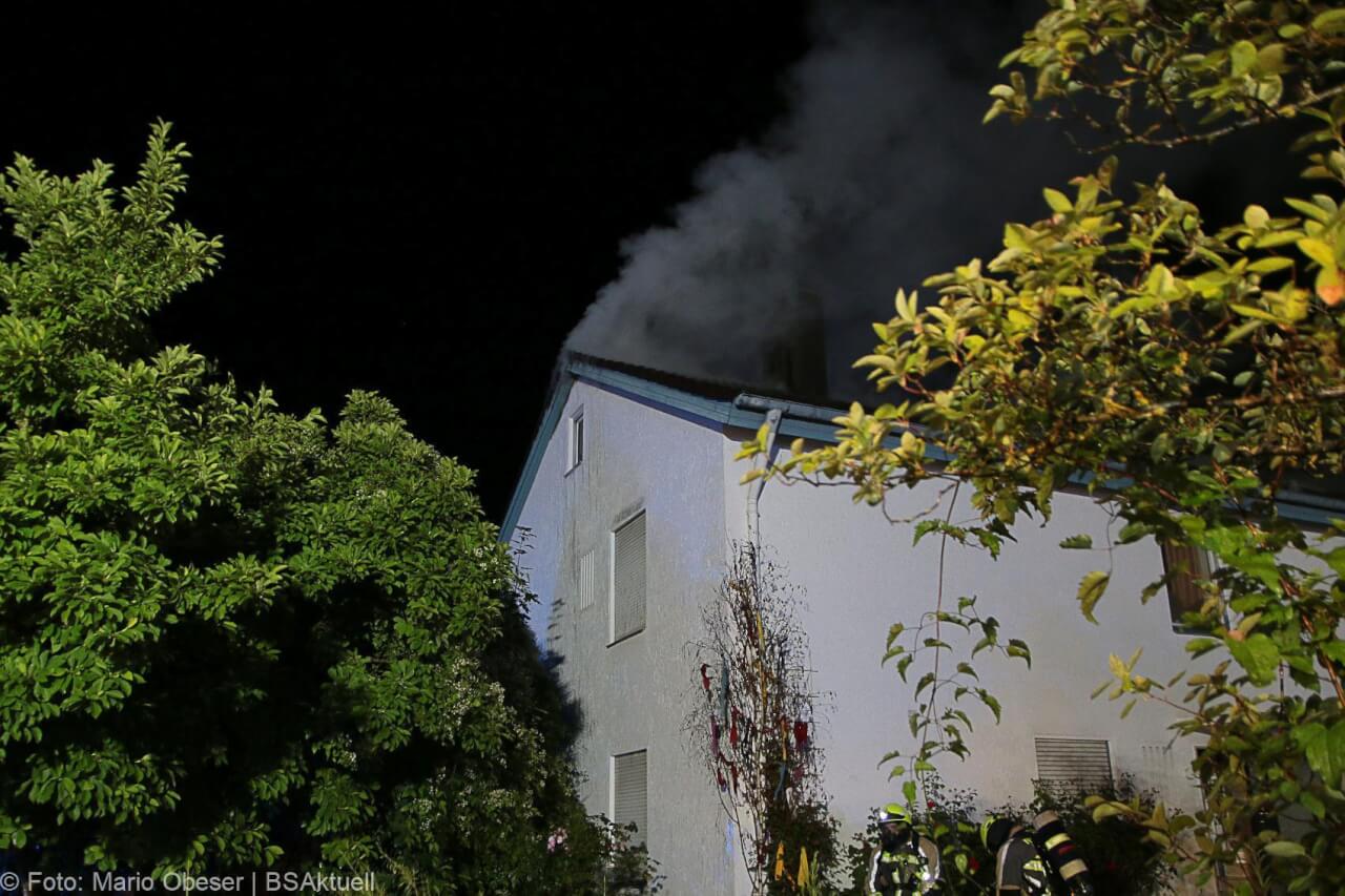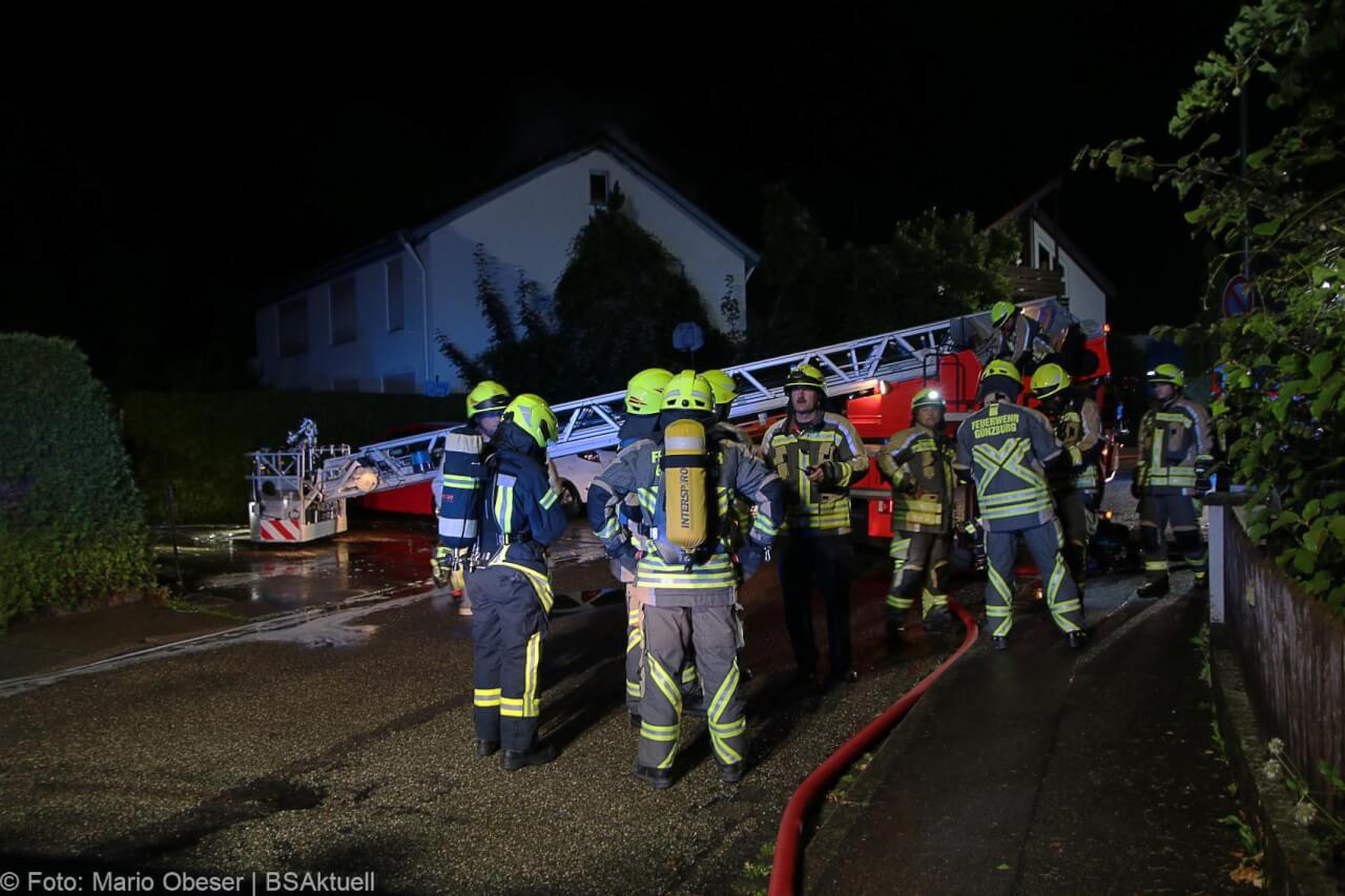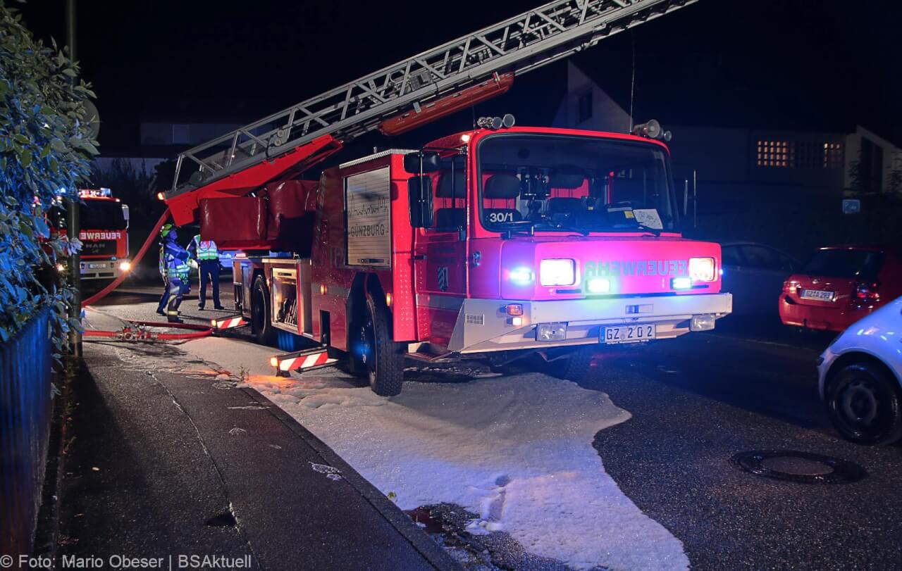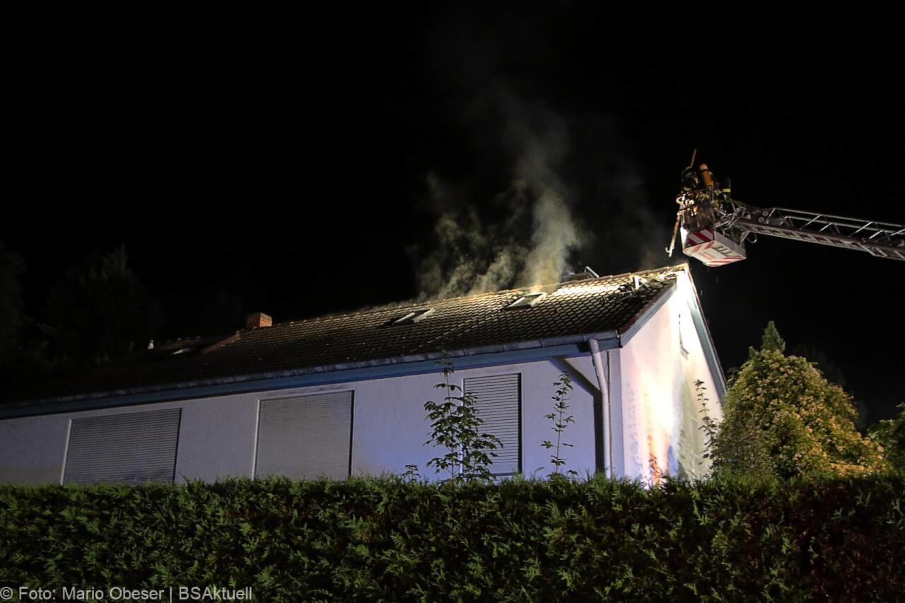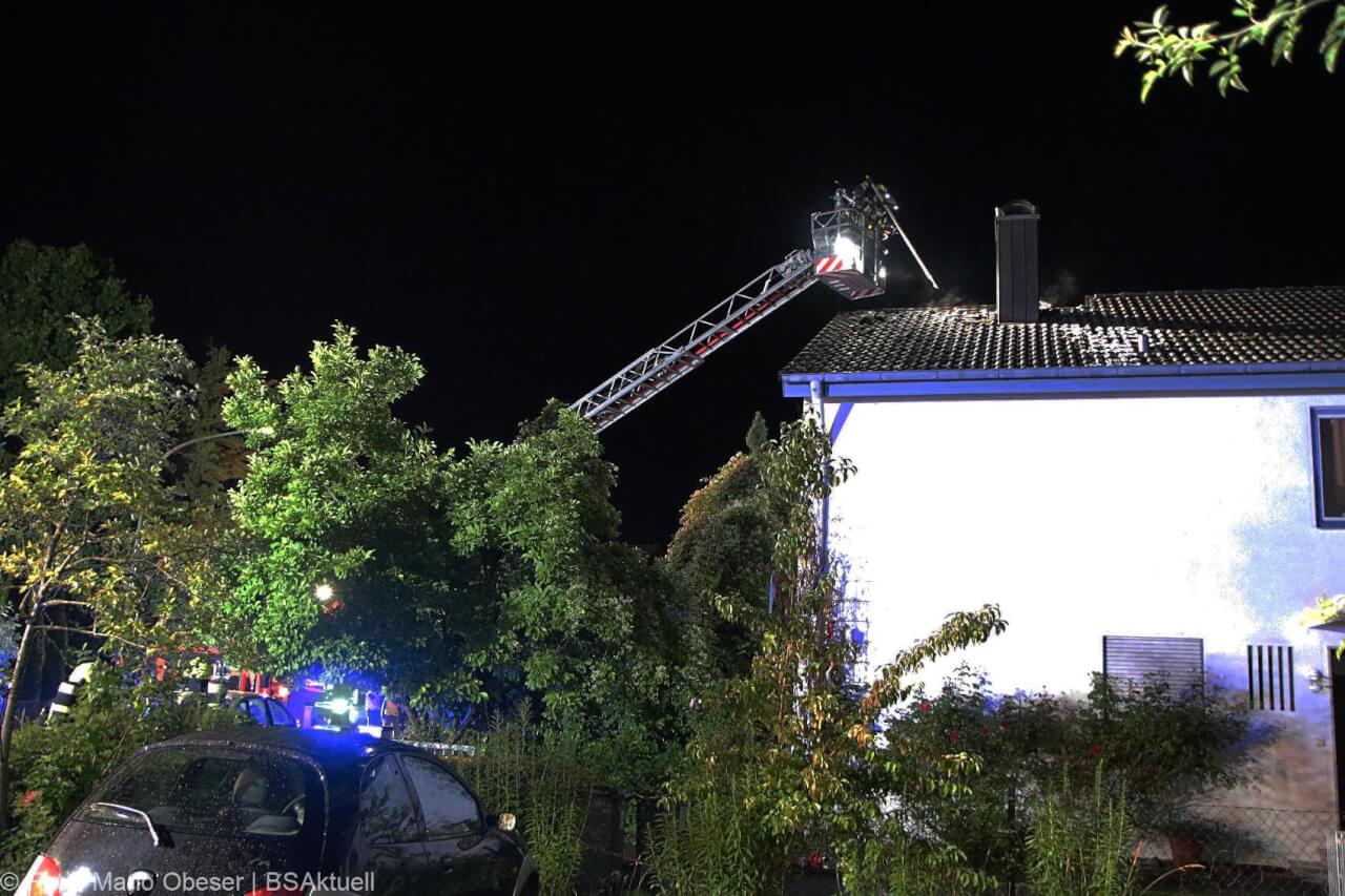 Die 40 Kräfte der Feuerwehr Günzburg brachten die Drehleiter in Stellung und öffneten teilweise das Dach, um Glutnester freizulegen und abzulöschen. Zeitgleich fand ein Löschangriff auch innerhalb des Dachstuhls statt.