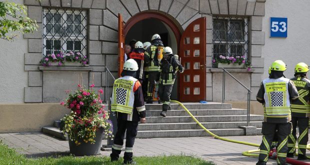 Zum Haus 53 des Bezirkskrankenhaus Günzburg rückte am 24.05.2019 ein Großaufgebot von Feuerwehr und Rettungsdienst an. Dort brannte es in einem Zimmer. Die Mitarbeiter