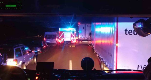 Auf der Autobahn 8 kam es am 26.04.2019, gegen 03.30 Uhr, zwischen den Anschlussstellen Günzburg und Leipheim zu einem Wildunfall. Rettungsgasse nicht nutzbar. Ein